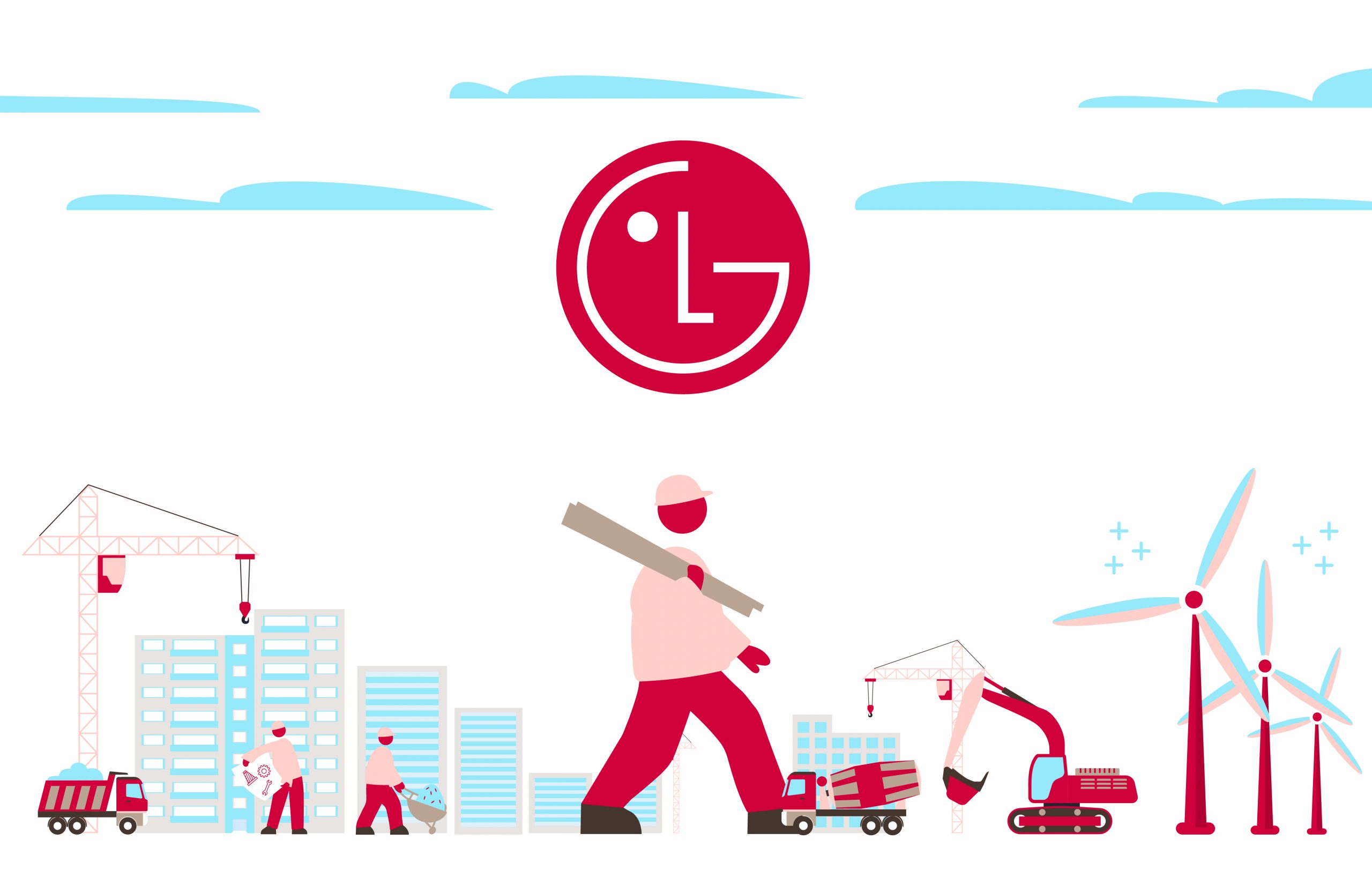 FM, MRO, Construction, Leisure 4개 부문을 LG 로고의 컬러와 형태를 활용하여 캐릭터를 제작,