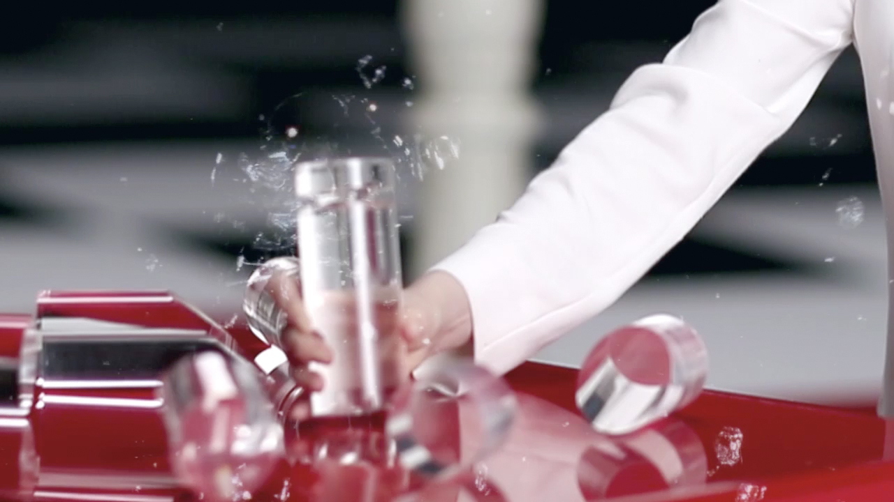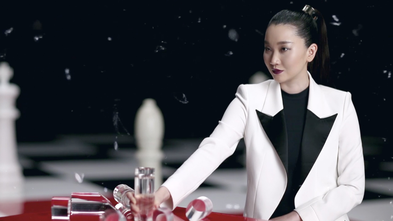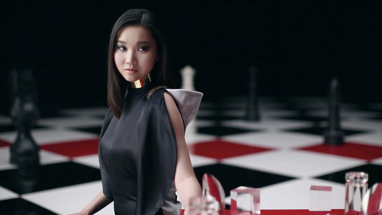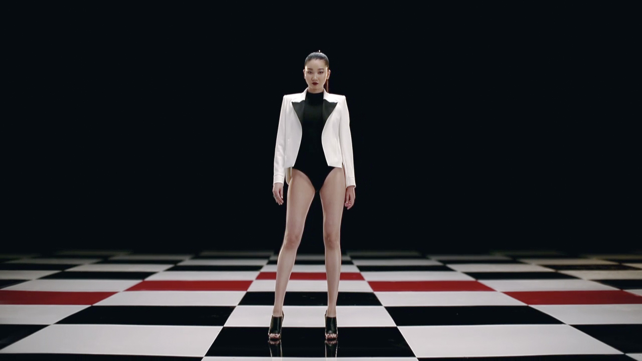 In the teaser video, the hostess Yoon-ju Jang in black and white